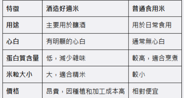 酒米的蛋白質含量少,相當適合做高級的日本酒